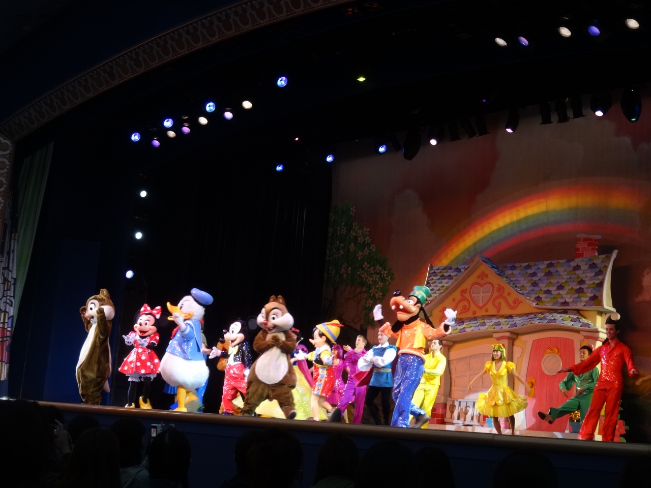雨のため抽選なし、しかも30分以内にして入れました。いつも見たくても抽選はずれて見れなかったので2年ぶりです。やっぱり圧巻のステージです。ミッキーミニーの白黒からカラーになるところは鳥肌ものです。メインキャラ総出演でとにかく豪華ですね。