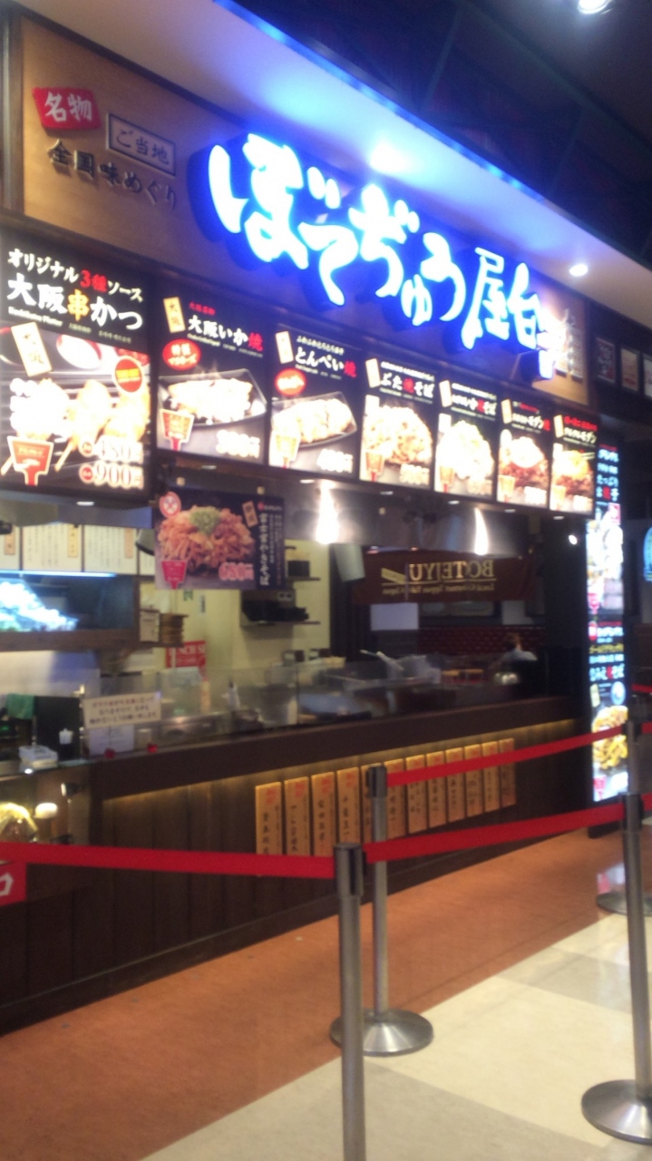 京セラドーム前のイオンモールのフードコートにある、大阪のお好み焼きチェーン店ぼてじゅうのカジュアルバージョンです。こちらはお好み焼きというより焼きそばやとん平焼き、イカ焼きなど粉もんがいろいろあります。京セラドームに来た大阪ビジターにもオススメです。