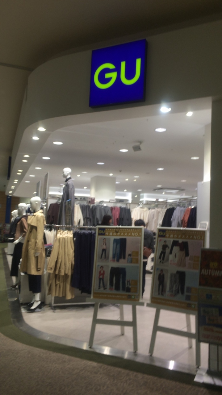 大阪市内のイオンモール内にあるGU。ファミリー層の利用が多いイオンモールではGUやUNIQLOはなくてはならない存在ですね。週末は混雑が予想されます。平日はガラガラです。どんどんGUもおしゃれ化していってますね。