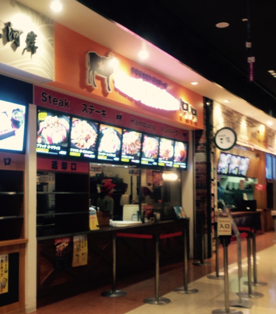 大阪市内のイオンモール。その4階がフードコートになっていて、このステーキ店があります。サイズも焼き加減も選べてテイクアウトもOK。味はアメリカナイズな感じです。ボリューミーなので学生の男の子なら喜ばれるかもしれません。