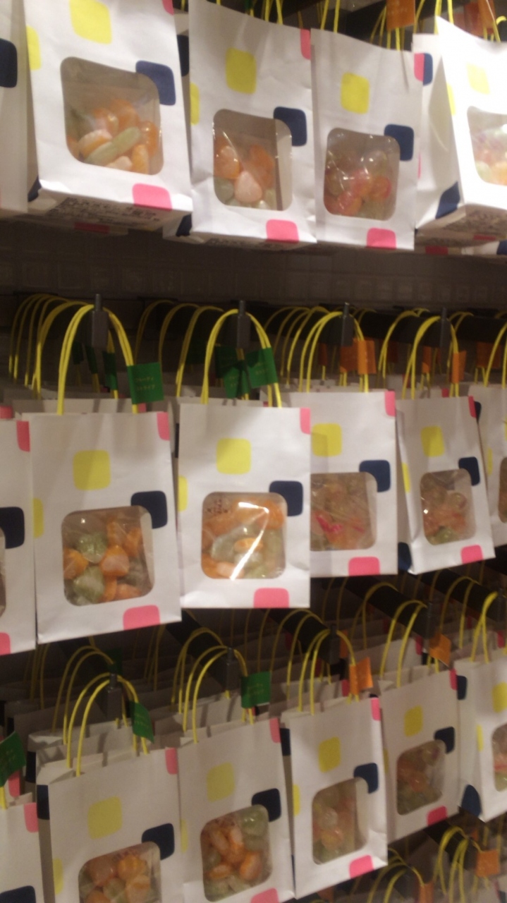 東京駅のグランスタで発見したひとつぶカンロ。缶入りの雨やピュレグミがカラフルに並んでいてどれもかわいくておみやげに配りたくなります。東京駅限定品などもあるのでこちらもチェックです。今回は缶入りを購入しました。