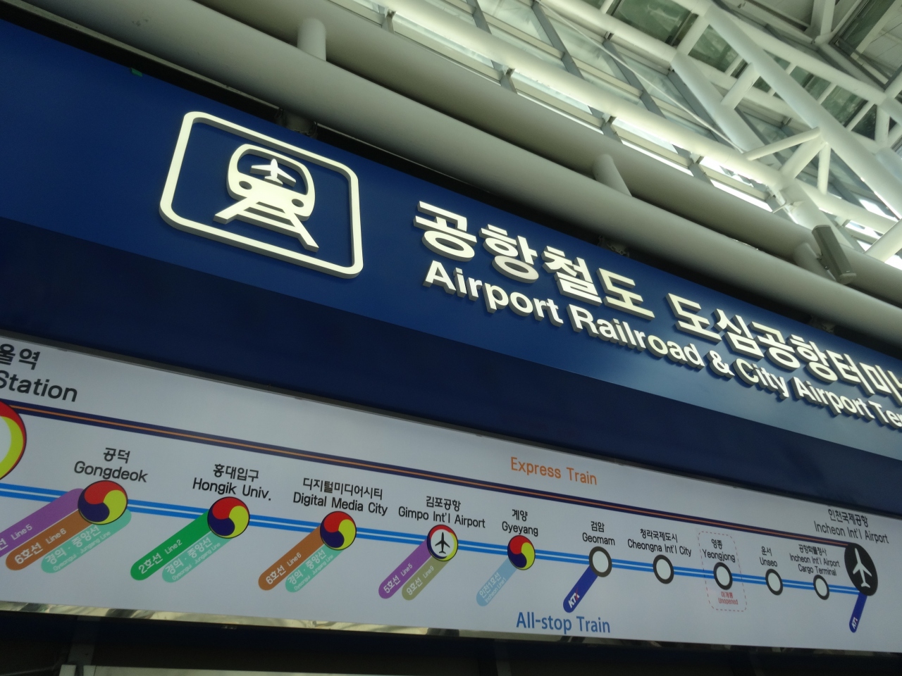 仁川空港駅とソウル駅を結ぶ空港鉄道です。乗客の少なさからずっとキャンペーンをしているようで半額の800円ほどで乗車できます。一応指定席ですがすいているのでどこに座ってもOK。車掌さんのチェックもありますが何も言われないです。知りませんでしたがT-moneyでも乗車できるそうです。
