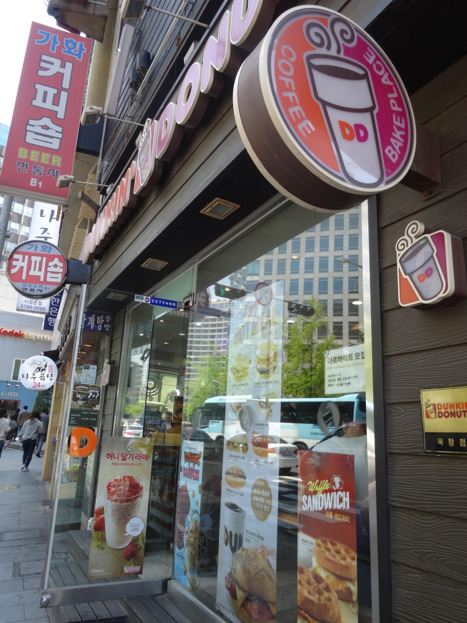 カナダやアメリカで食べたダンキンドーナツ。日本はすぐに撤退してしまったのにソウルにはあるんです。ドーナツおいしいです。とりあえずコーヒーが飲みたくて買ったんですけど、サイズが大きくて並々入ってて飲めない。味もアメリカンすぎてイマイチでした。ドーナツ屋はドーナツを食べないとね。