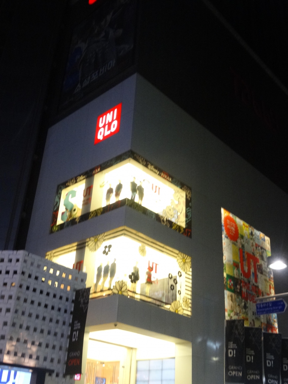 明洞にドーンとあるユニクロビル。地元人や観光客に人気が高いようでTシャツフロアにはとても人がいっぱい。最近できた商業施設D!はユニクロの地下にあります。明洞の好立地にあることから本気度をうかがえます。便利です。