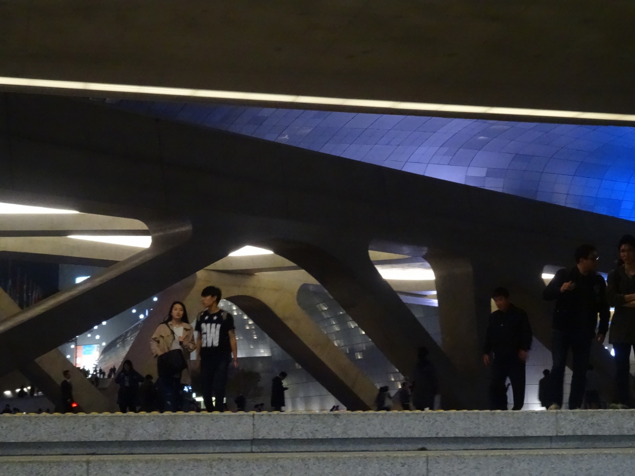 東大門の新ランドマーク。こちらは東大門運動場の跡地。約4年8ヶ月もの期間をかけて完成したアート・デザインに触れられる観光名所。ユニークなフォルムの外観に東大門の地下鉄から上がるとビックリします。夜はライトアップされていてかっこよさ倍増。