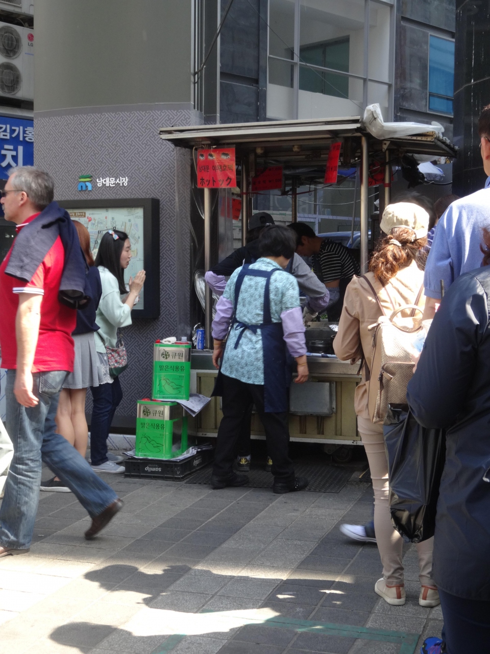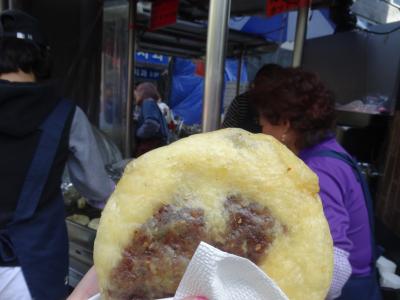 南大門市場の大通りで目立つ行列。その正体はホットックの屋台です。かなり長蛇の列ができています。すぐだと思って並んだけど結構時間がかかります。それはここのホットックは揚げだから。かなり大きいです。だけど半分が衣状態。真ん中の蜜のところはパリッとしておいしいです。野菜のホットックも気になるけど次回。