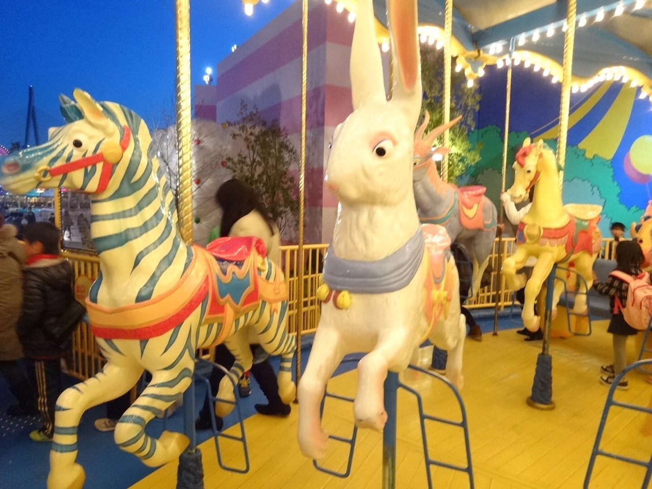 ユニバーサルワンダーランド内にあるメリーゴーランドです。動物の表情が全てかわいいです。上下に動くのと動かないのがあり、子供の大きさにによって乗りわけができるのもポイントです。かなり久しぶりに乗車したので気分があがりました。