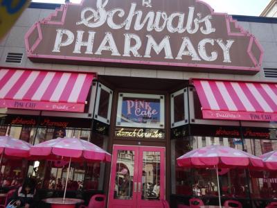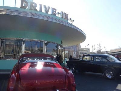 アメ車がずらりと並ぶ50年代のアメリカンダイナーをイメージしたレストラン。店内にはジュークボックスもあったりで映画の世界にどっぷり浸れます。こちらはハンバーガーなどのアメリカンなファストフードが食べられます。