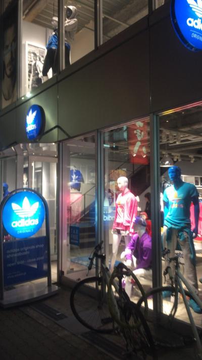 アメ村にあるアディダスショップ。路面です。2フロアで見やすい。1階は最新アイテムやスニーカー、キッズウエアが並んでいます。今回は売り切れていたスタンスミスをチェックしに来店。サイズがちょうどあって感動、即買い。