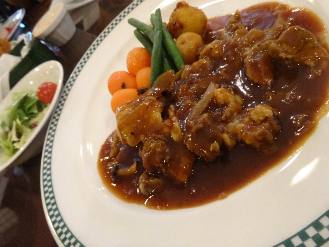 バーとしても使える大人仕様のダイニング。こちらの名物はオニオンブロッサムとビール。ランチどきにたべのりシステム目当てに行きました。プラス700円でエクスプレスパスがもらえます。シチューセットにしました。ソーダーパンは食べ放題。
