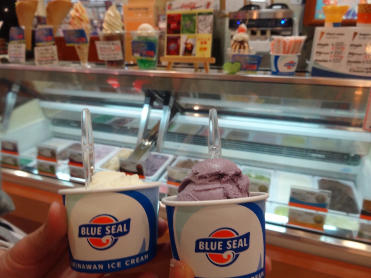 沖縄のアイスクリームといえばブルーシールです。せっかく沖縄に来たならとイオン内で食べました。沖縄食材のものをと迷いに迷って紫芋アイスにしました。甘くて美味しかったです。関空にもありますが大阪で食べると違うんです。