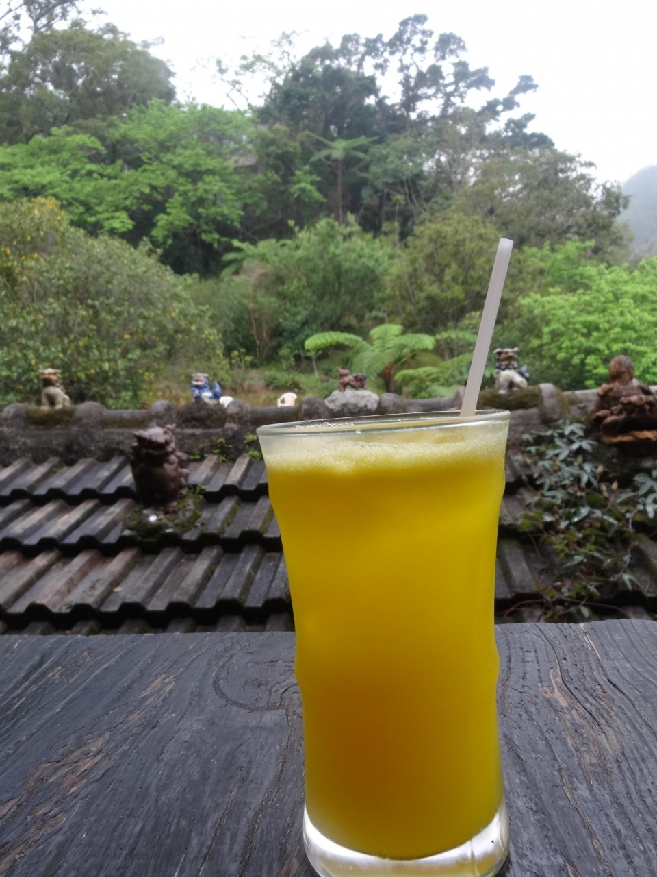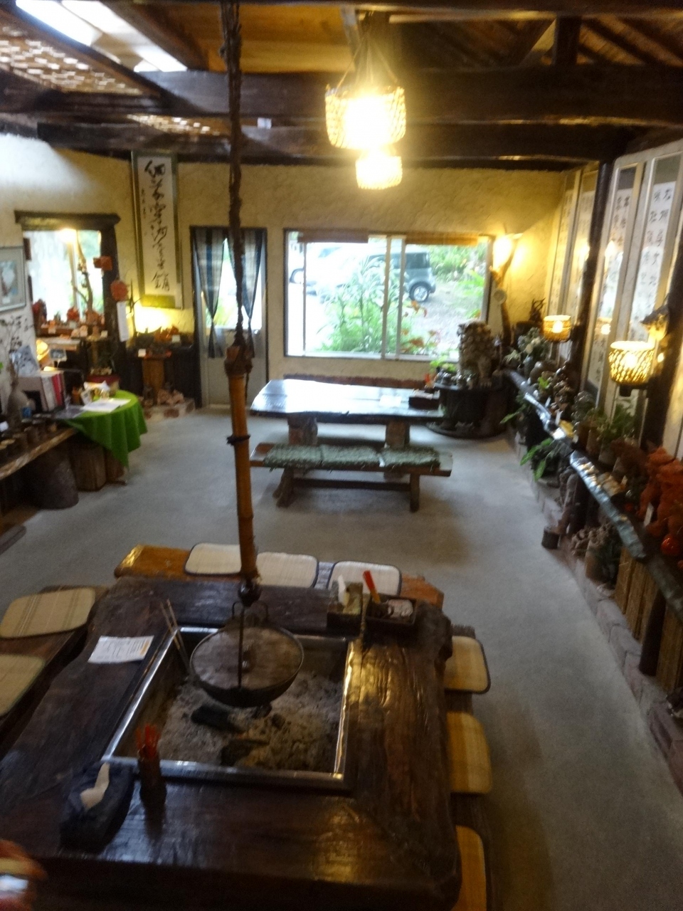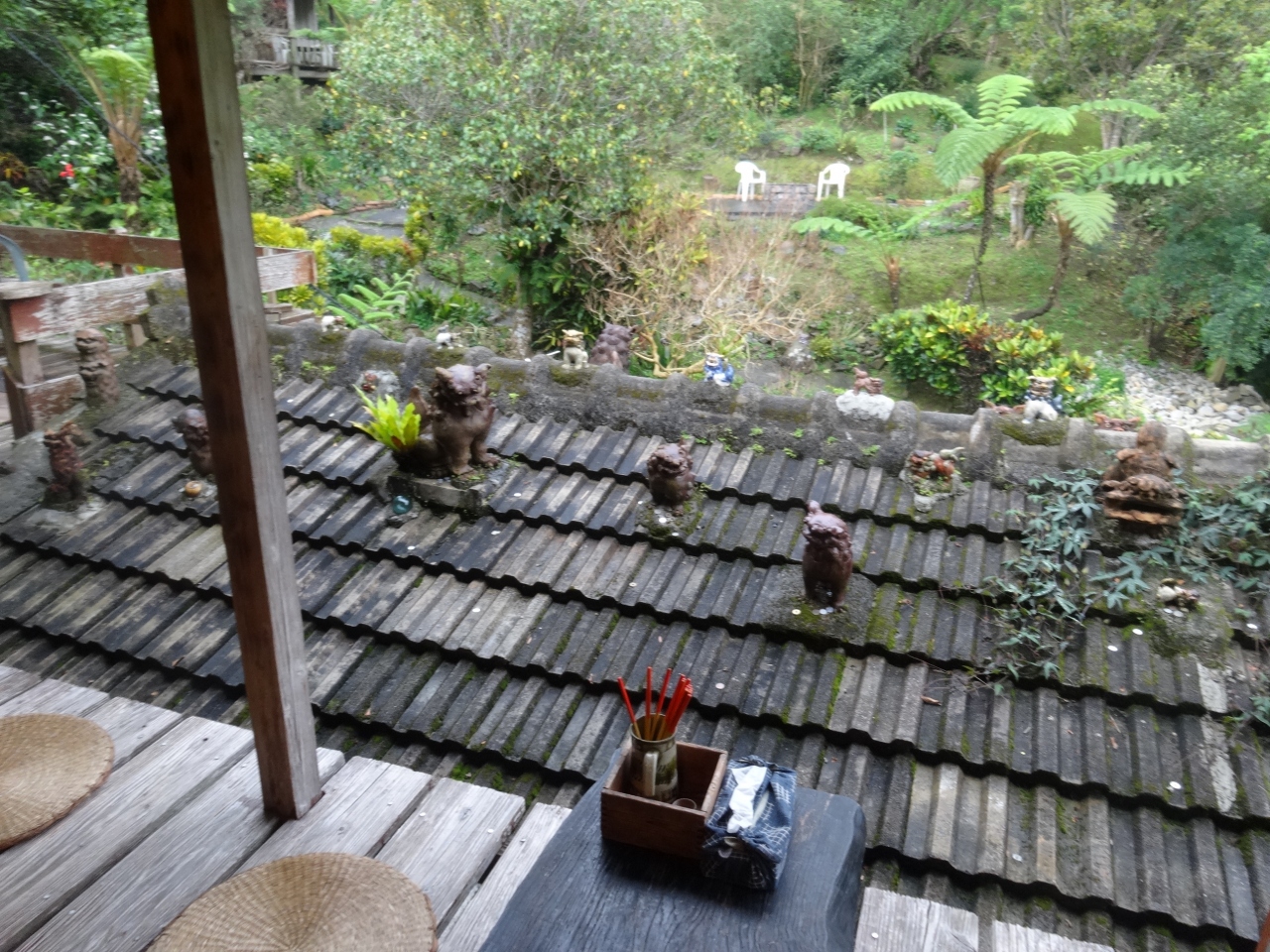 森カフェを求めてドライブ。ここは昔からある有名店です。1階は囲炉裏、2階は縁側風になっていて雰囲気抜群です。前には庭園もあります。屋根にはたくさんのシーサーがいてフォトジェニックの極み。15時くらいに行ったのでフードメニューはなくみかんジュースをいただきました。