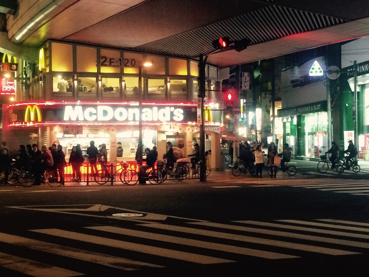 なんばパークス前の交差点にあるマクドナルドです。2階の建物で、1階が購入するカウンターです。場所がら人が常に多くいます。上品とはいえません。パークスがあるのでめったに利用しませんが、ポテトが無性に食べたくなれば行きます。