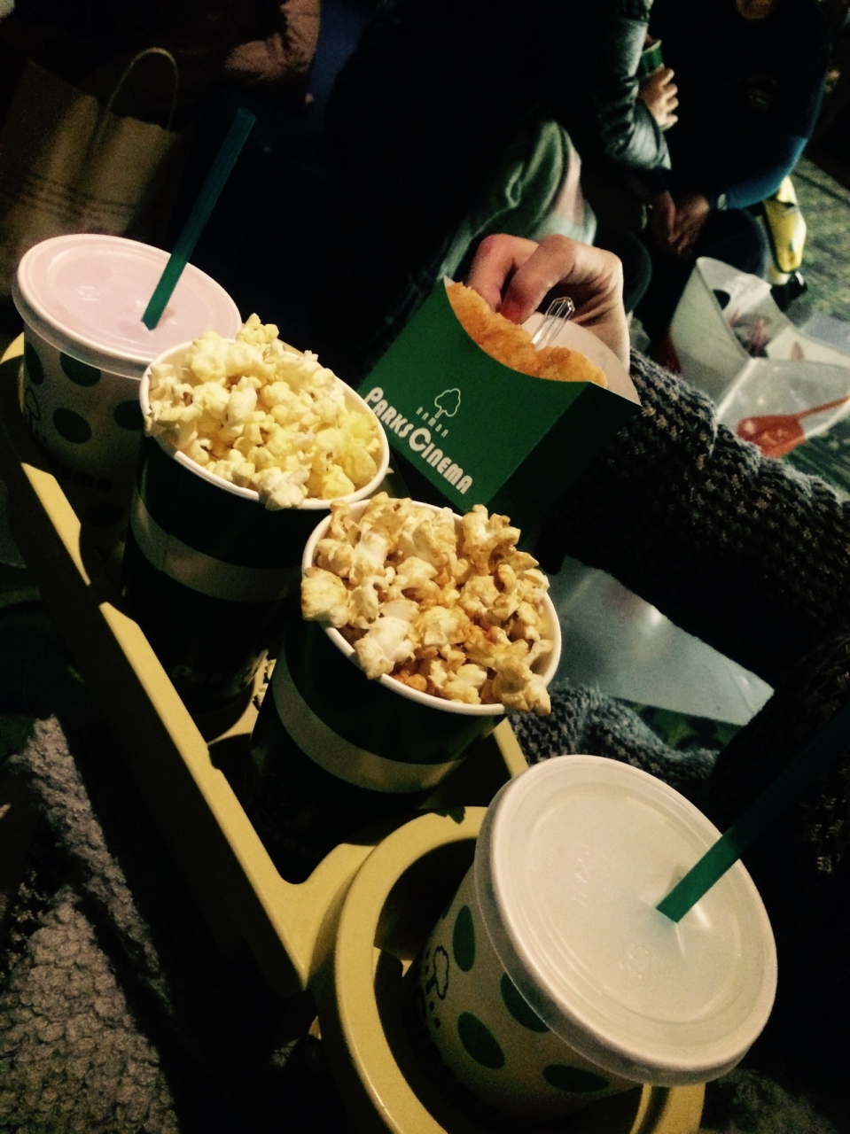 心地よいなんばパークスの8階にあるパークスシネマ。今回友人のポイントが貯まっていたのでポップコーンとドリンクのセット、ハッシュドポテトを購入しました。ポップコーンはキャラメルと塩味の2種です。塩味がきいていておいしかったです。