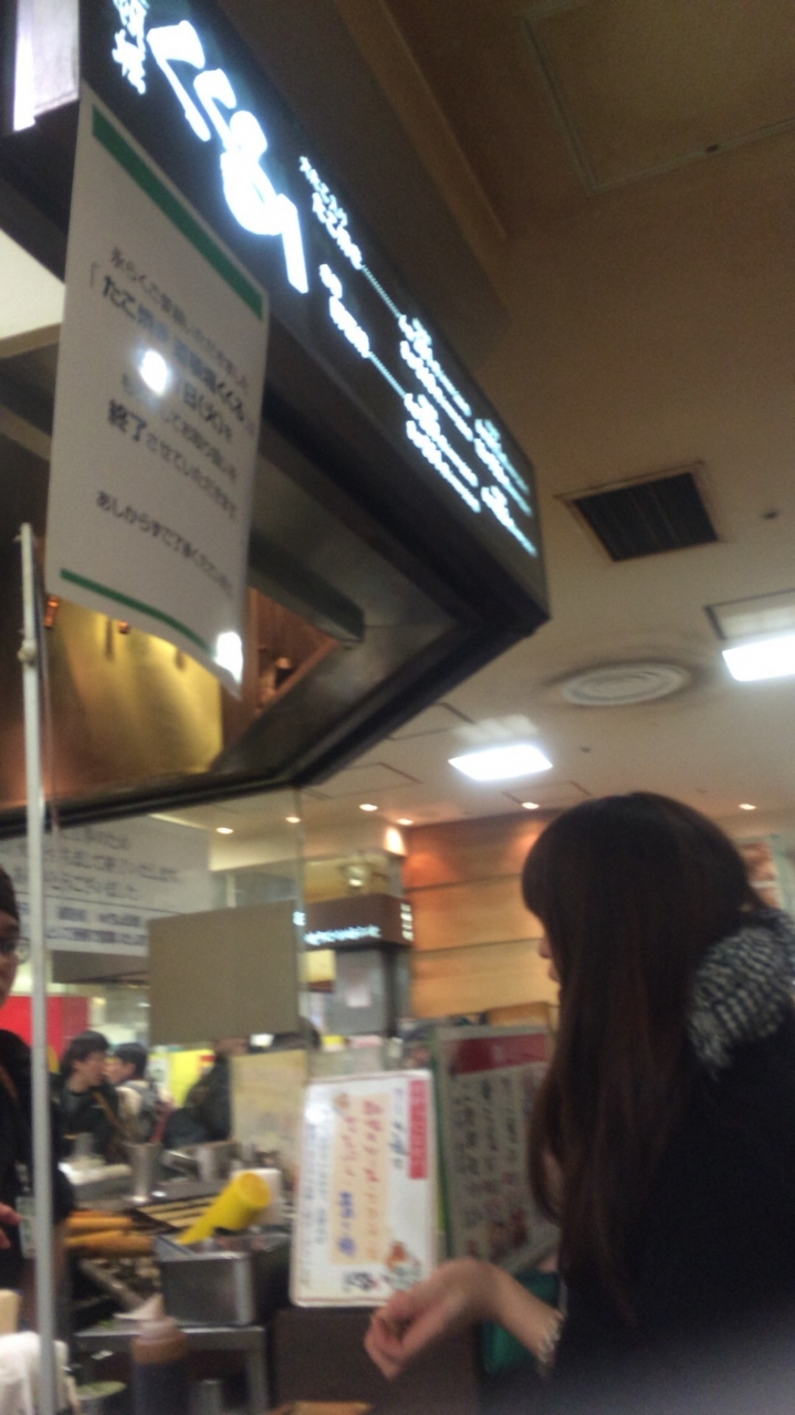 人気チェーンたこ焼き店。阪神百貨店のスナックパークにあります。観光客にも便利な立地で行列ができていることもありますが、手際がよく回転が速いのであっと言う間に買えています。共有のテーブルでイートインすることも可能です。