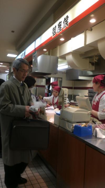 昔っから阪神百貨店といえばのイカ焼きです。たまご焼きをプレスしてその中には小さくカットしたイカがゴロゴロ入っています。テイクアウトしてもおいしくいただけます。たまにとても食べたくなる味。こちらも行列ができています。