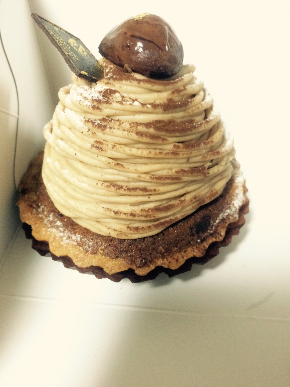 こちらのケーキは大きいけれど、あっさり生クリームと軽いスポンジでぺろっとたべられてしまいます。今回は以前から狙っていた贅沢モンブラン1080円をふたりで分けて食べました。タルト生地もゴロゴロ入るマロンもサイコーです。贅沢!