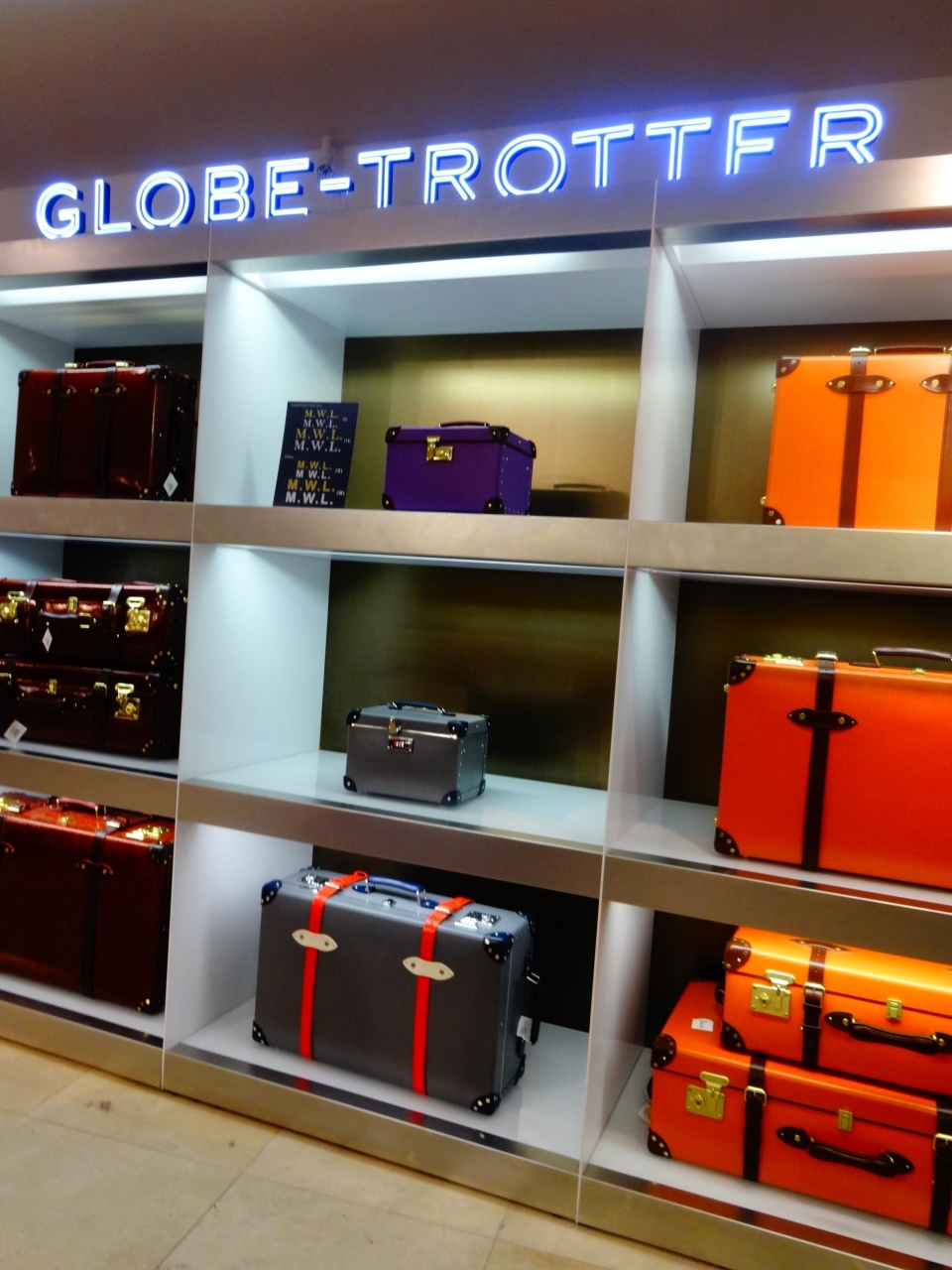 英国生まれのマッキントッシュのコート。そして見た目のスタイリッシュさと丈夫さで人気のグローブトロッタのスーツケース。どちらも憧れです。現地偵察をといそいそと訪れましたがもちろん本国でも高級。購入は次回の課題に。