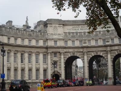 曲線カーブを描く荘厳なアーチです。とにかく厳かなでかっこいいこの門がバッキンガム宮殿に通ずる道なのです。1912年にビクトリア女王をたたえて造られた門だそうです。大きさはなんと8階建てだそうです。一部は隣にある国防省の建物とつながっているのだとか。