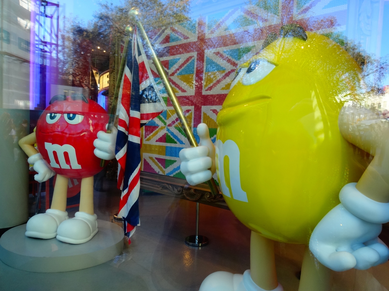アメリカでは飛びついていたM&Mですが、ロンドンで見るとは何とも…です。だけど、かわいい。紅茶持ったりユニオンジャックの旗持ったり、ブリテッシュな感じになっていて思わず店内に吸い込まれます。空港内でもM&M商品たくさんありました。