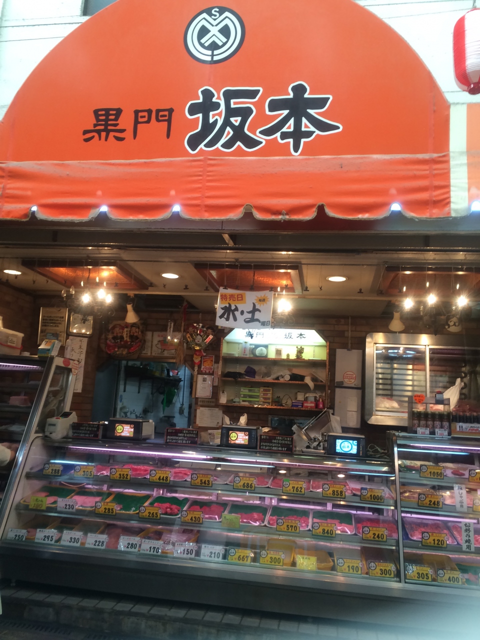 黒門市場内にあるお肉屋さん。店頭でコロッケを揚げてくれます。1個60円です。安いほんでおいしい。あつあつで衣サクサク中もホクホク。揚げたてはやっぱり最強。普段日曜はお休みだけどたまたま開いていたそうでよかったです。