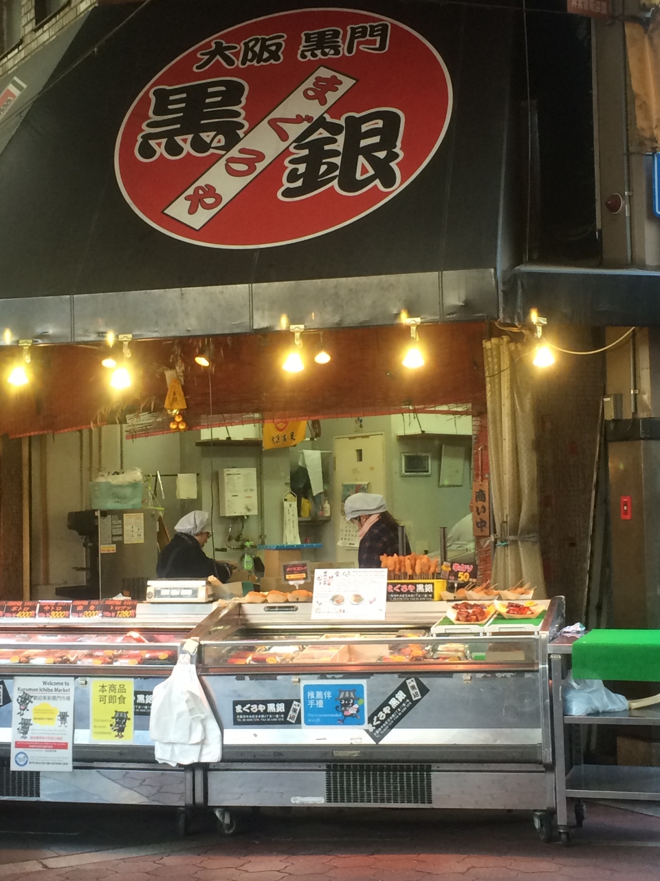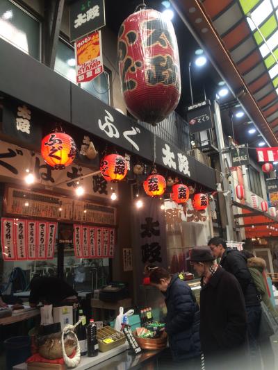 今アジア人観光客で沸いているといわれる黒門市場へ友人と行きました。日曜は休業も多いはずがさすが師走。活気であふれていて歩くだけでも楽しいの。海鮮丼や汁物、果物など、観光客が思い思いのフードを休憩所で食べていました。