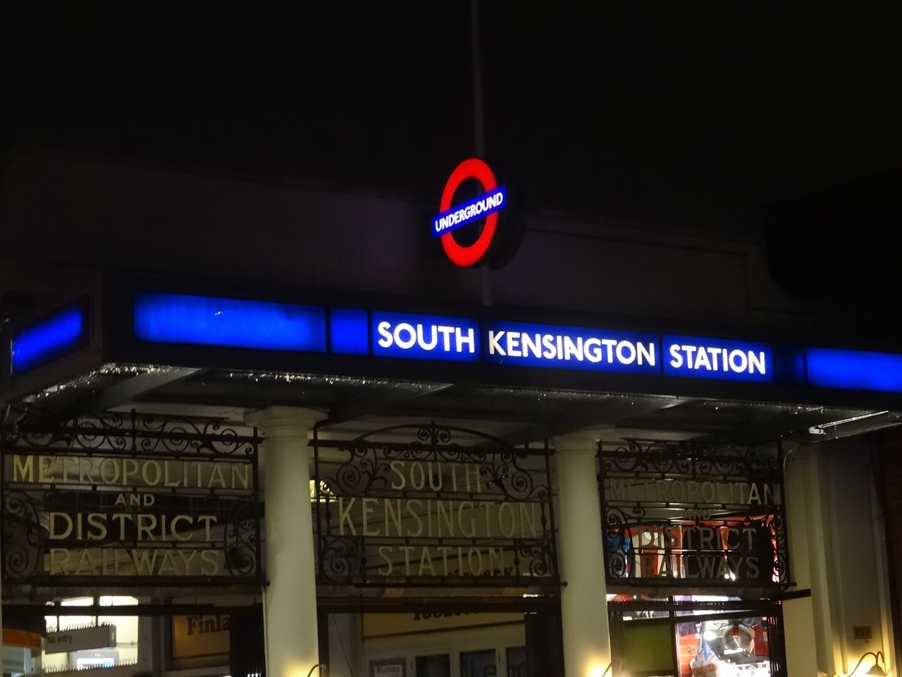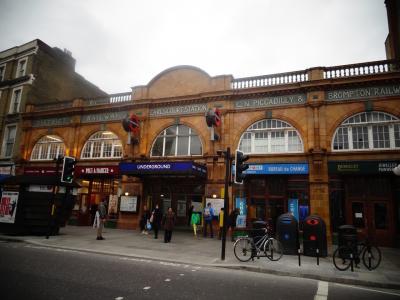 自然史博物館やV&A美術館の最寄駅だからか夜でもにぎやか。駅の周りには飲食店も多くて観光客以外にロンドナーも多くてとても活気があって楽しい駅周辺です。駅前のアイアンの看板もおしゃれです。こちらもアールズコート同様の3ライン使えて便利。