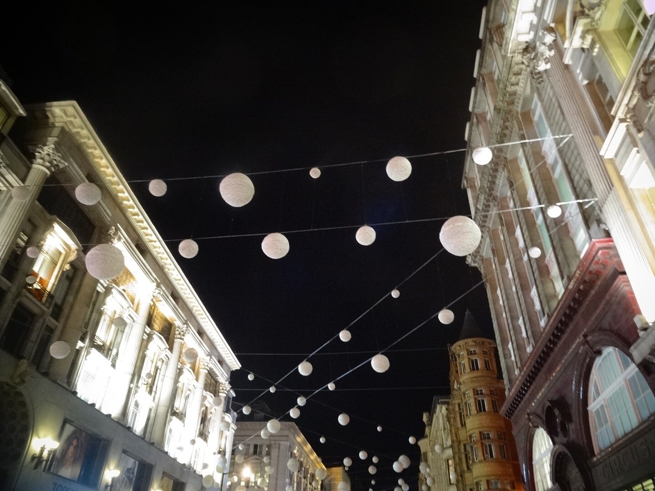 ピカデリーサーカスからオックスフォードサーカスをつなぐ華やかなストリート。ショップも並んでいてとにかく楽しいです。天井にはクリスマス用のかわいいライトもスタンバイ。クリスマスシーズンにはライトアップされて雰囲気がますますステキになるそうです。