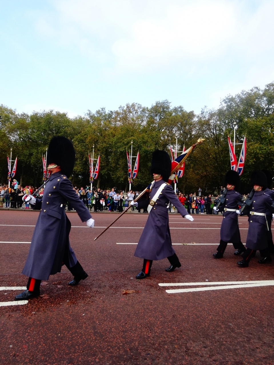 今回は兵隊のチーム制や制服などについて事前に調べていきました。そして1時間以上前に到着して正面門の前の階段で鑑賞。冬季は偶数日にしか行われないので必死です。おかげでよく見えました。この旅の2回目はザ・マルで行進中の兵隊さんを近くで見れてこれもよかったです。