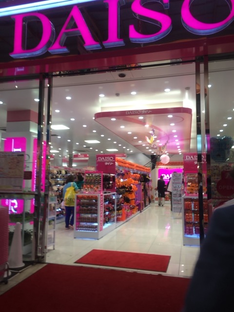心斎橋筋商店街内にあるピンクダイソー。ここは女性目線のラインナップをテーマにしていて、とても広く充実の品ぞろえです。3か4階まであります。1階は季節商品とメイク、食品が多いです。外国人観光客のおみやげ探しには最適ですね。