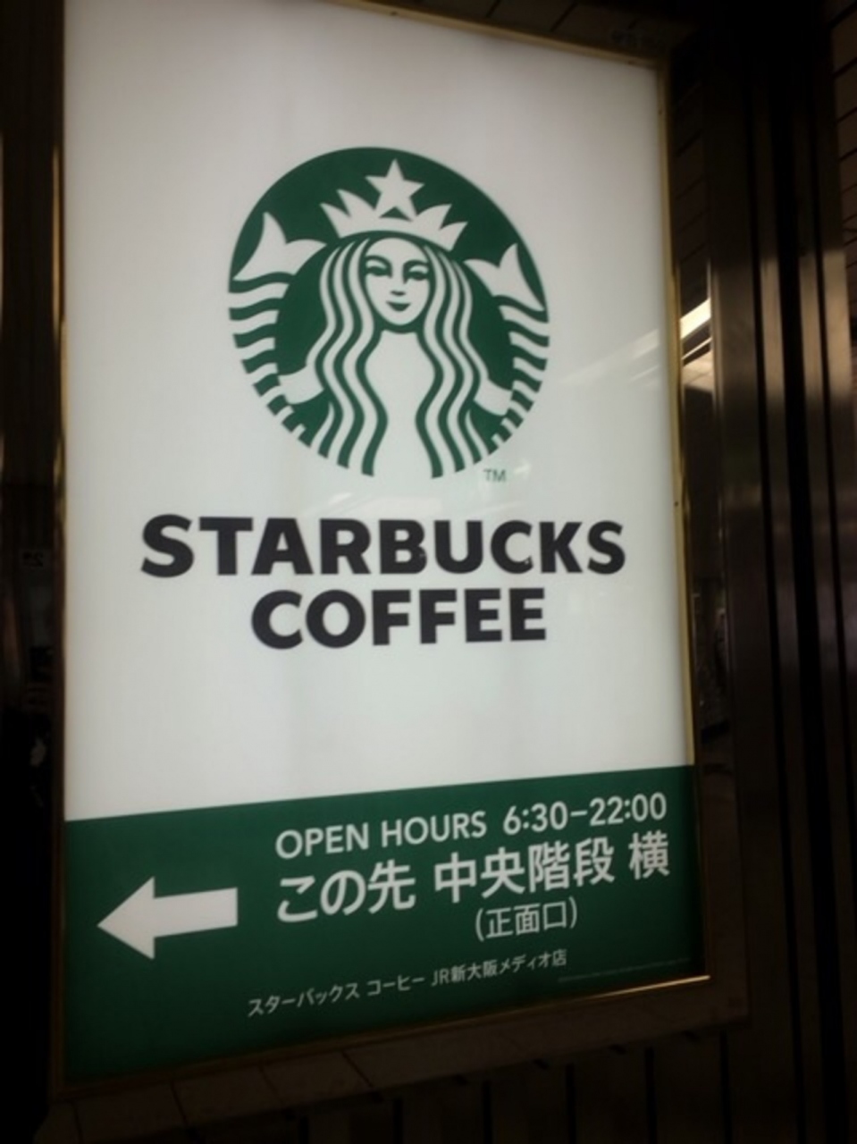 こちらのスターバックスは新大阪駅にありますが、御堂筋からJRへ行く途中にあります。地下一階の少しだけ内側にあるのでちょっと穴場的なかんじです。居心地もそこそこよいですので、待ち合わせにも便利ですのでおすすめ。