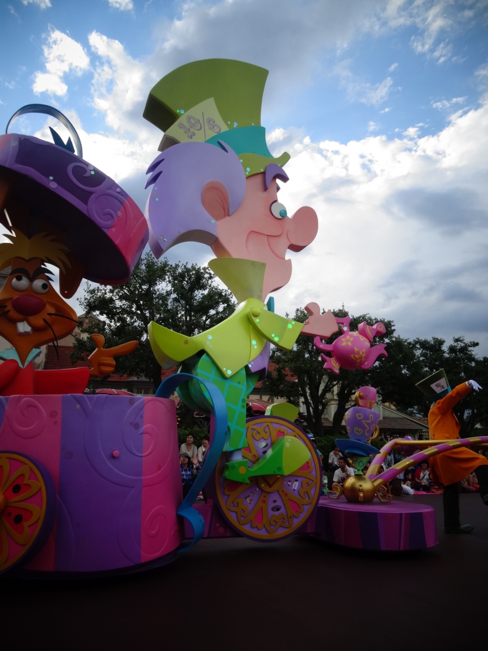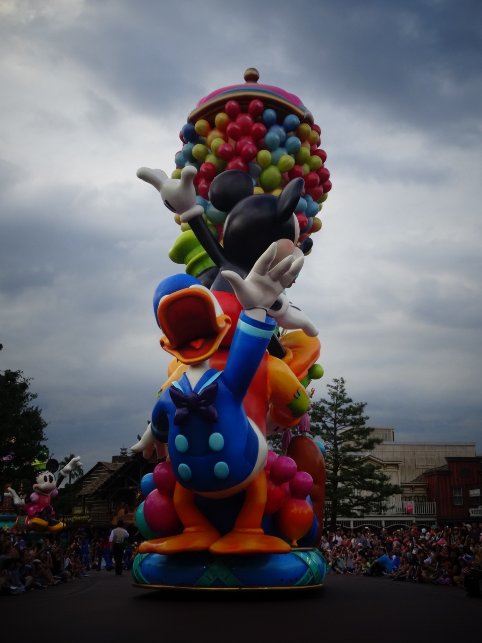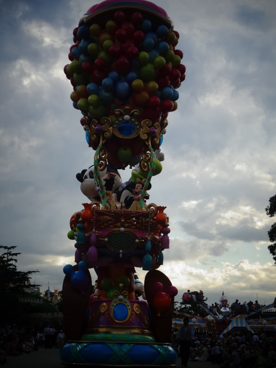色鮮やかなバルーン風のパレードで空の青に美しく映えます。