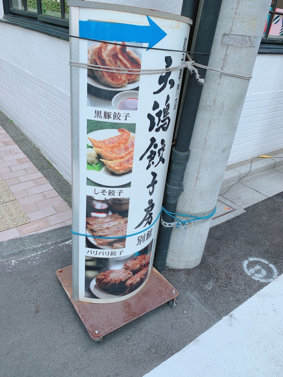 日本橋をあるいていてそそられる看板がありました!この餃子なんか本格派っぽい。しかも別館ってとこもおいしそうだし、ということで日を改めて友人を誘って行きました。餃子の種類も多いし、皮ももちもちだしめちゃうまです