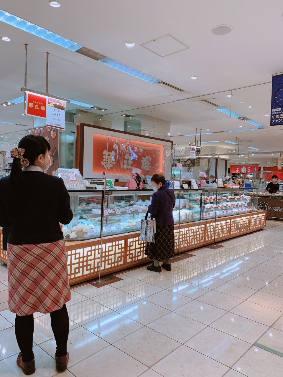 はじめて降り立った南浦和の駅構内にある和菓子の屋台です。和菓子食べたい!疲れた体にそっと寄り添ってくれる和菓子をほっして購入しました。わらび餅がおいしいみたいだけどあまり好きではないので、わたしは大福をチョイス