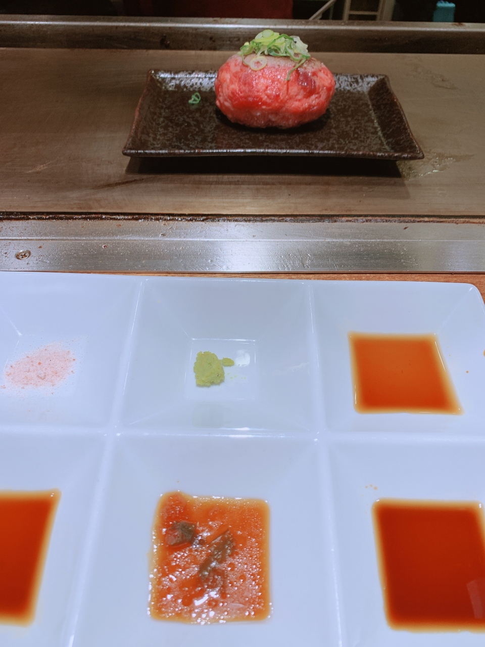 おいしいハンバーグ屋さんがあると聞いていってきました。カウンター席で自分で焼くスタイルです。肉がジューシーでおいしいです。オプションで生卵もオーダーしていただきました。最後にはソフトクリームももらえて満足です