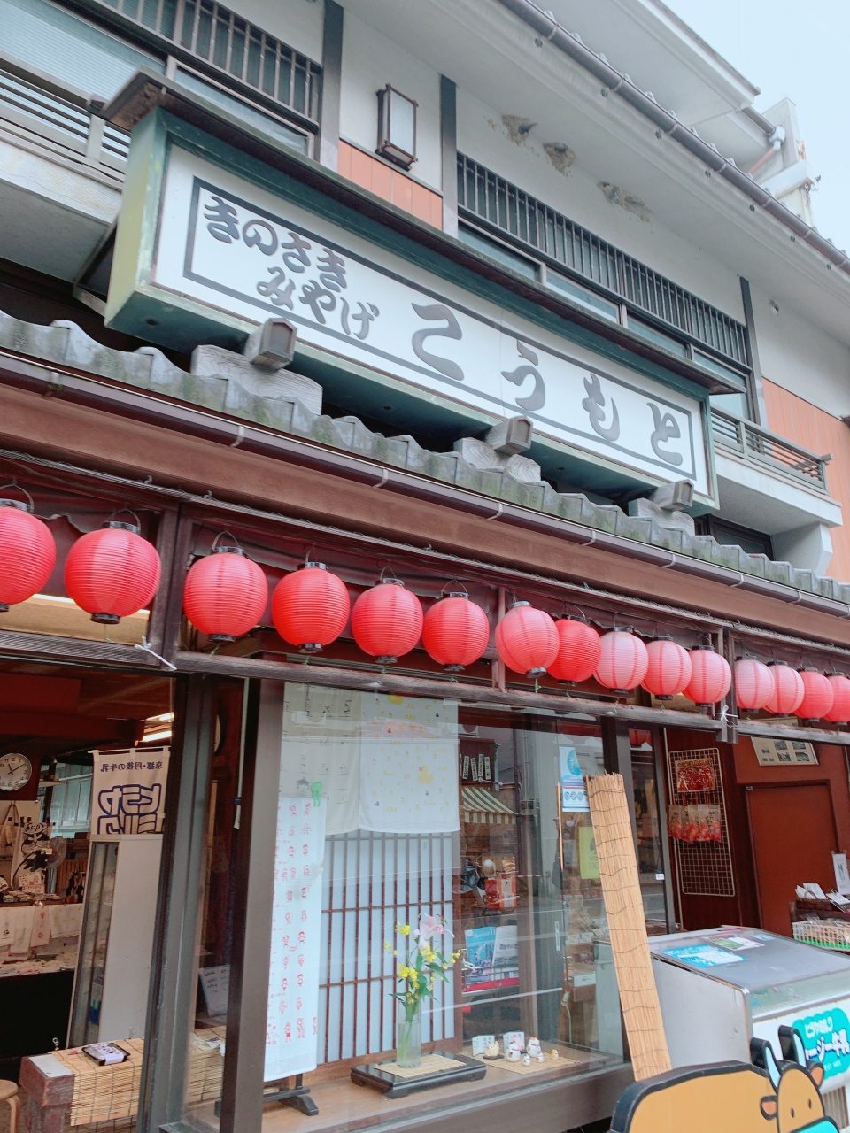 城崎温泉は外湯めぐりが楽しいです。その流れで川沿いのお店の探索も楽しいですね。ここはおみやげ屋さんです。食べ物も民芸品もあってみているのも楽しいです。また買ってしまった。旅行記念だかたいいか。と買い物も。