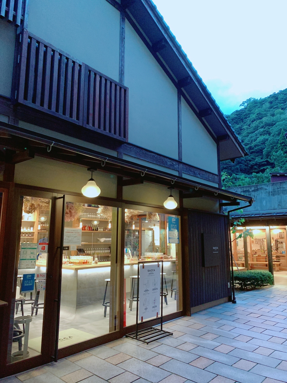 城崎温泉町にある商業施設です。町家に数店舗連なっています。今回行きたかったのがsaccaです。ここで香水を作成できると聞いていってみました。香水ではなくルームフレグランスでしたが、オーダーメイドで自分だけの香りが完成しました