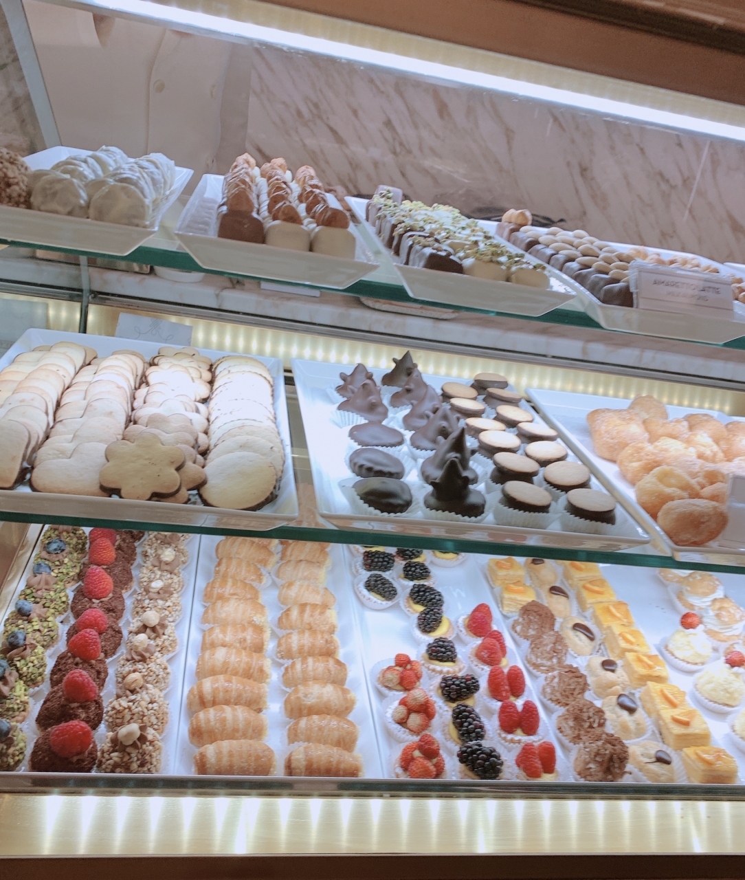 憧れの歴史あるパティスリーです。高級ストリートにあります。お招きしていただいたご自宅へもっていくようにケーキを買いに行きました。注文するだけでキンチョウしちゃいました。ラッピングを待ってる間にバールでカフェも飲みました