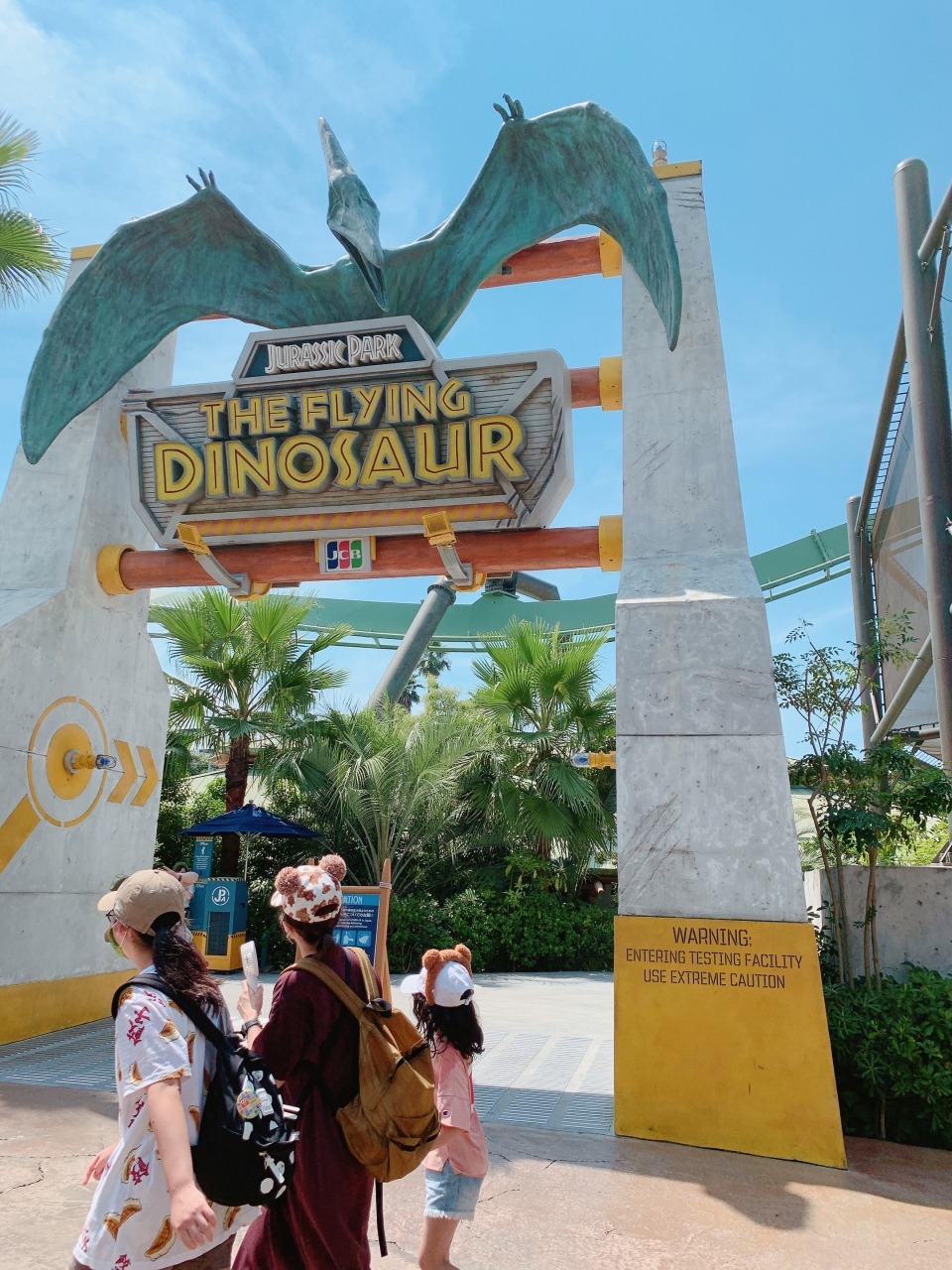 浮遊感がたまらない、脚をぶらぶらとさせるジュラシックパークの新しい方のライドです。絶叫が楽しいです。胃が浮くタイプではないのですが、テンションが上がります。いい感じに叫んだら気分もリフレッシュできていいですね