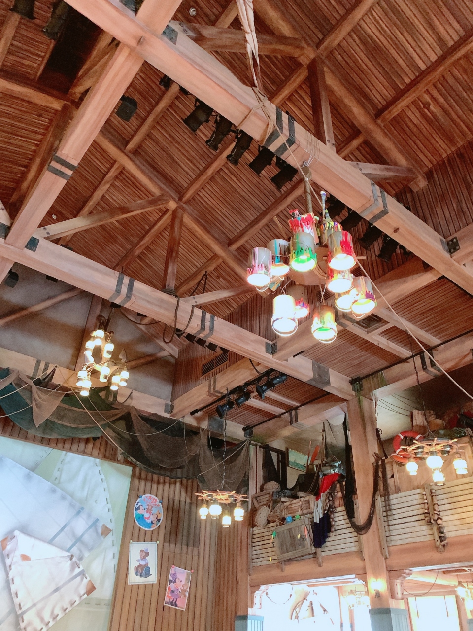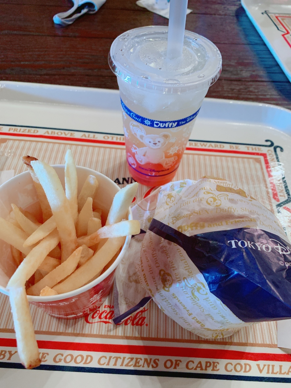 普段はダッフィーのショーをしているのでなかなか入ることがなかったレストランにはじめて来ました。ハンバーガーとユニークな季節ものドリンクをいただきました。このひなびた漁港感がおもしろい。イラストなかったらどこやねんです。