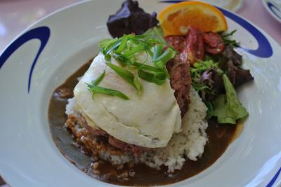 ロコモコもまーまーおいしいが、日本人がイメージしている/“ご飯の上にハンバーグに目玉焼きが乗ってるロコモコ”とは、別物です。