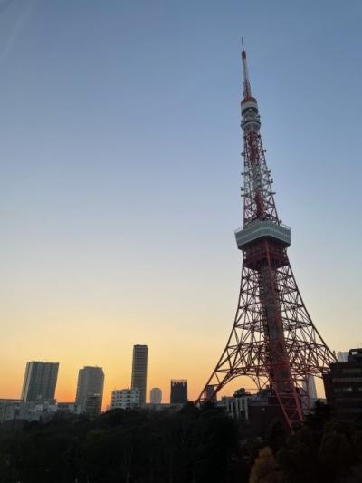 ケーキを食べ終わる頃には、夕暮れの景色に夕暮れの東京タワーをお部屋から...
