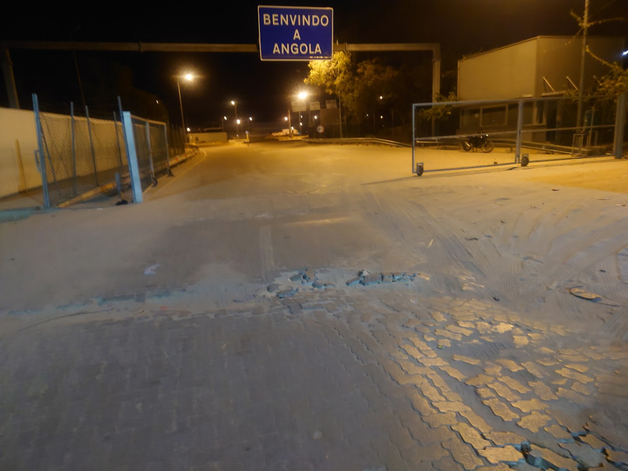 国境は24時間開放。ナミビアのイミグレを出ると「Benvindo a Angila(アンゴラへようこそ)」という看板のある道が続いていて、左側に(ちなみにナミビアとアンゴラは一時間の時差があり、アンゴラは車は右側通行になる。注意が必要。)金網がある歩道が付いているので、そこを道なりに歩くと、アンゴラのイミグレがある。ブースに人がいない時は、右手に事務所があるので、そこで声をかけると審査官がやってくる。