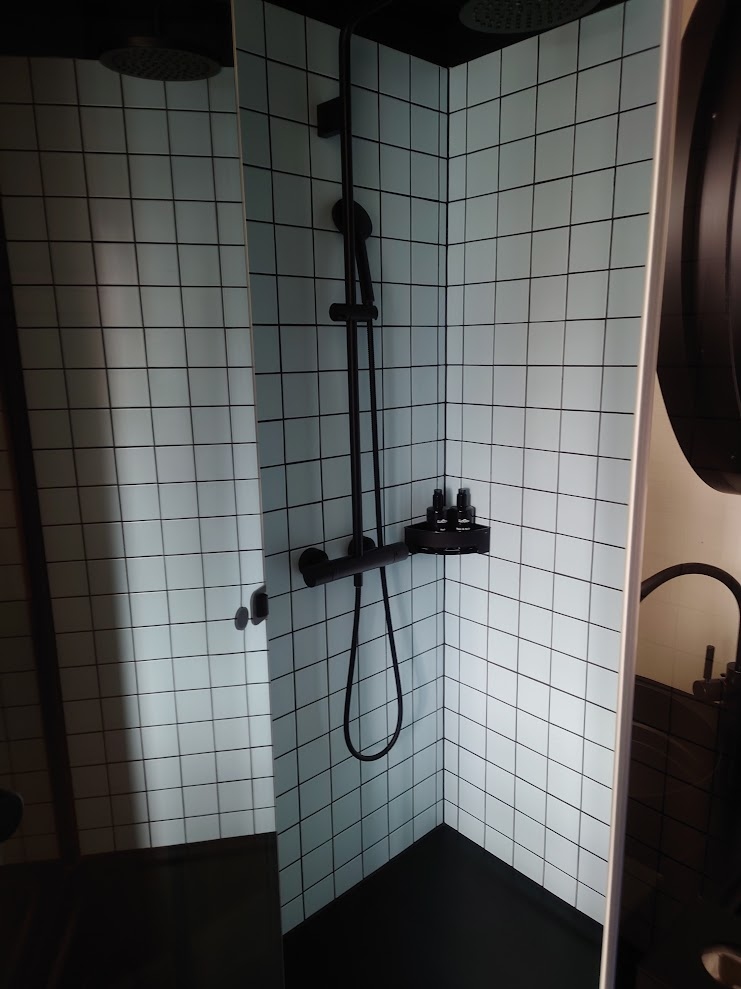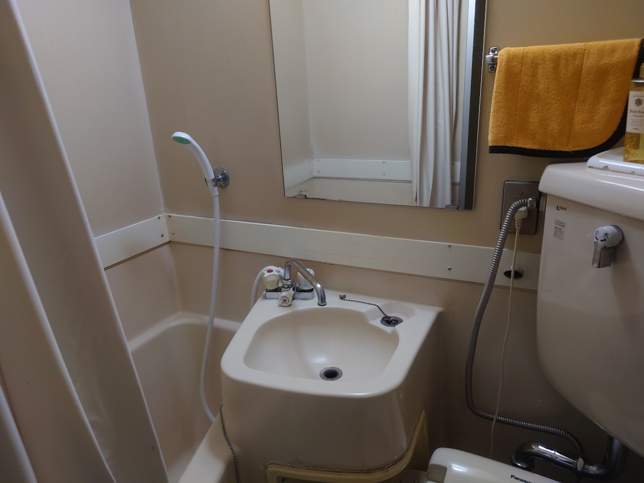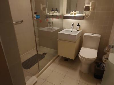 ・トイレとシャワールームは同じところに並んでいて(最近はこういうのが主流なのか・・・)シャワールームも鍵がかかり、着替え室があるので使いやすい。が、シャワーヘッドが固定式・・・お湯はきちんと出る。