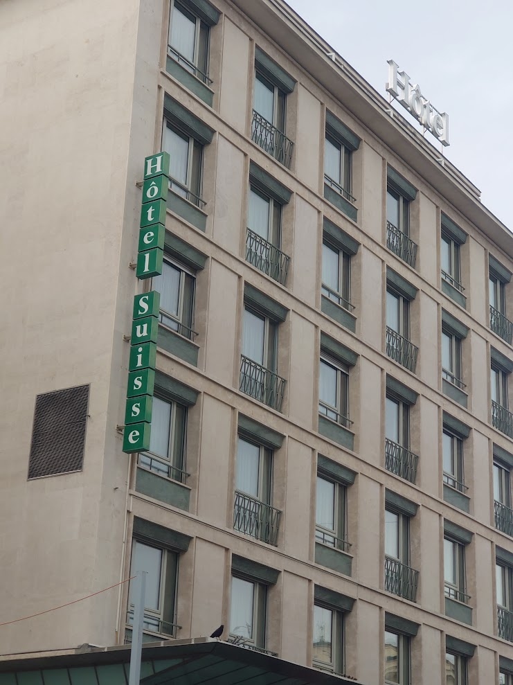 スイスの最後の夜くらいはきちんとしたホテルに泊まろう、と思っていたが、チューリッヒ、ベルン、ローザンヌと来て、結局ジュネーブが一番高いのではと思いつつ探し当てたのが・・・というか、一番安いということが決め手だったのだか・・・このホテル・スイス。なんと20,000円を少し切った値段(朝食無し)で予約できた。