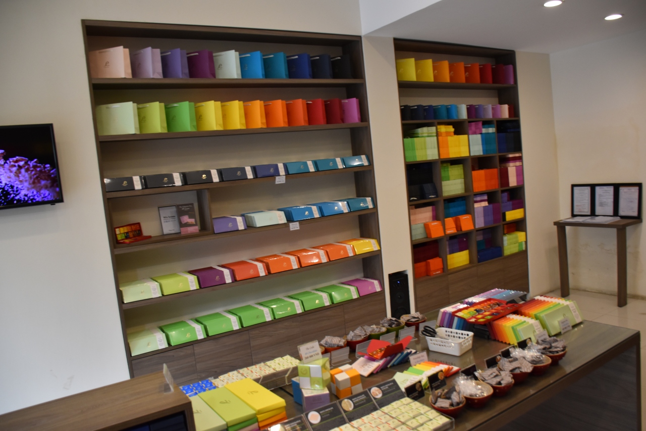 いろいろな種類のチョコレートが揃っていました。試食にブラックペッパーのチョコレートを食べて気に入ったので購入しました。お土産に配ったら珍しくて好評でした。他にもダークチョコレート・オレンジピール・全種類入ったキューブ型の入れ物も購入しました。店員さんが日本語で説明して下さいます。宿泊した(クレタケホテル)ホテルから歩いて8分でした。