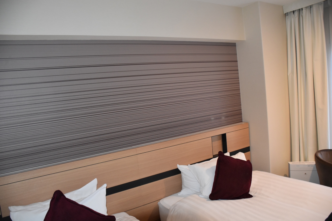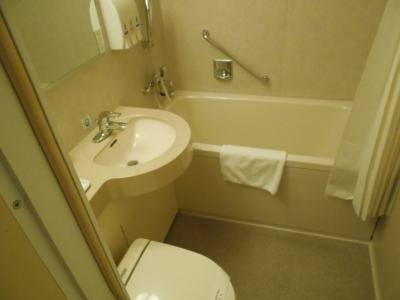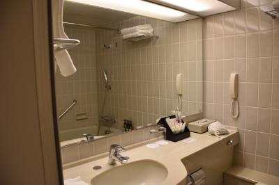日本のビジネスホテル部屋の広さです。トイレはウォシュレットで浴槽もあります。部屋はきれいです。テレビは日本の民放も見ることができました。ホテルの側にコンビニようなお店があります。朝食の種類はいろいろとありました。ただ、席が少ないので時間によっては座れないことがあり待つことがありました。無料の水がおいてありました。フエヴアチョコレートのお店にも歩いて行くことができまた。