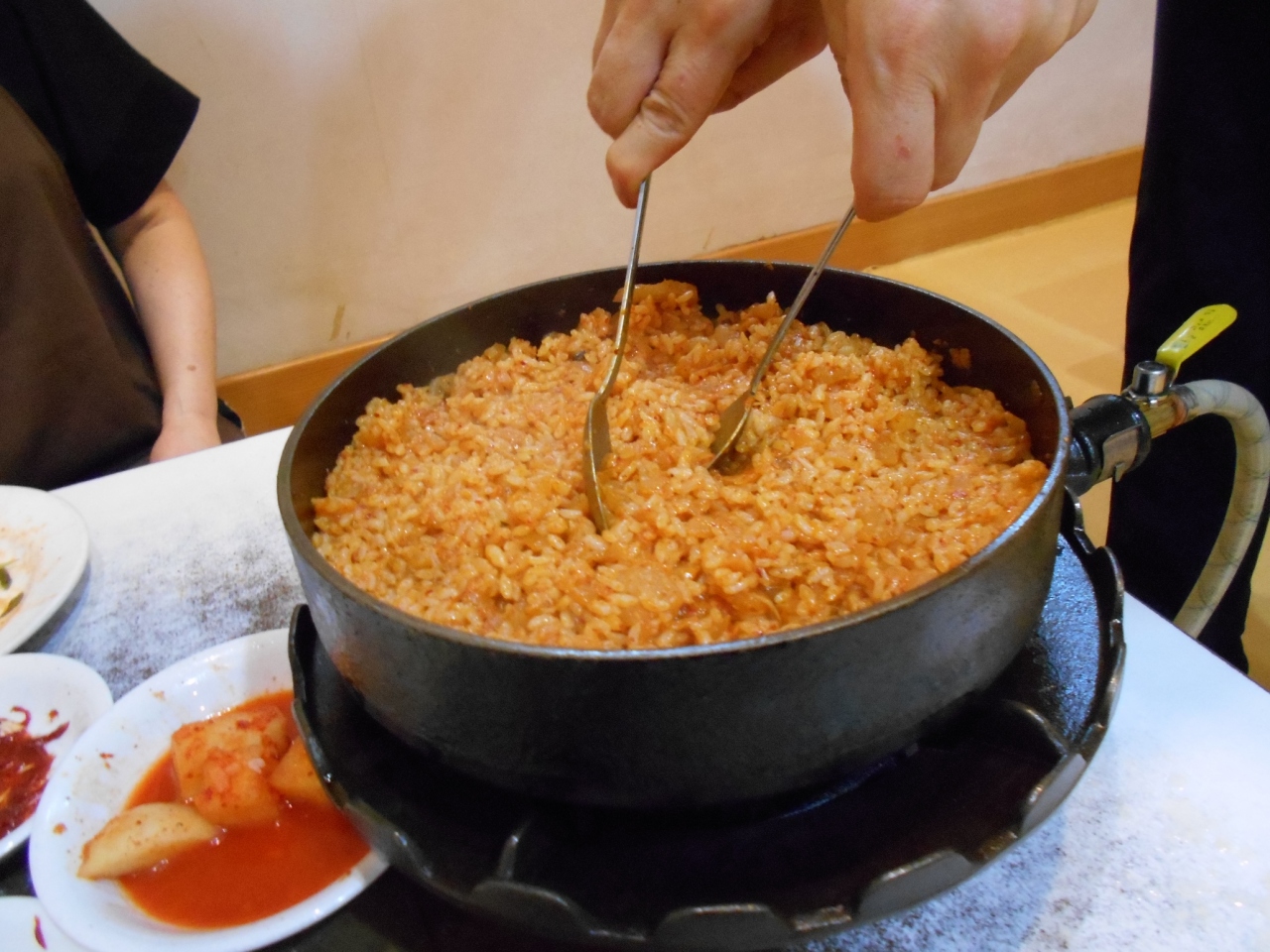 料理は韓牛ロースを頼むとすき焼き用の鉄鍋で焼いて食べます。最後に、大根キムチの焼きめしを注文しました。焼きめしは食べきれないと思ったのですが、おいしくてすべて食べてしまいました。また行きたいと思います。- 旅行時期