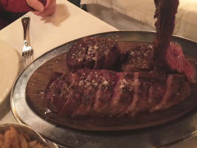 キタノホテルから近いので、ホテルのコンシェルジュに予約を頼みました。夕方、お客さんでいっぱいでした。天井にはパイプが飾ってありなんだかふるさと伝統を感じるお店でした。ステーキ4or2は量もあり塩味でさっぱりして食べきれませんでした。やっぱし、ステーキソースのほうがいいかな? 後、サラダ、ポテトも量がありました。デザートはニューヨークチーズケーキを注文、おいしく戴けました。