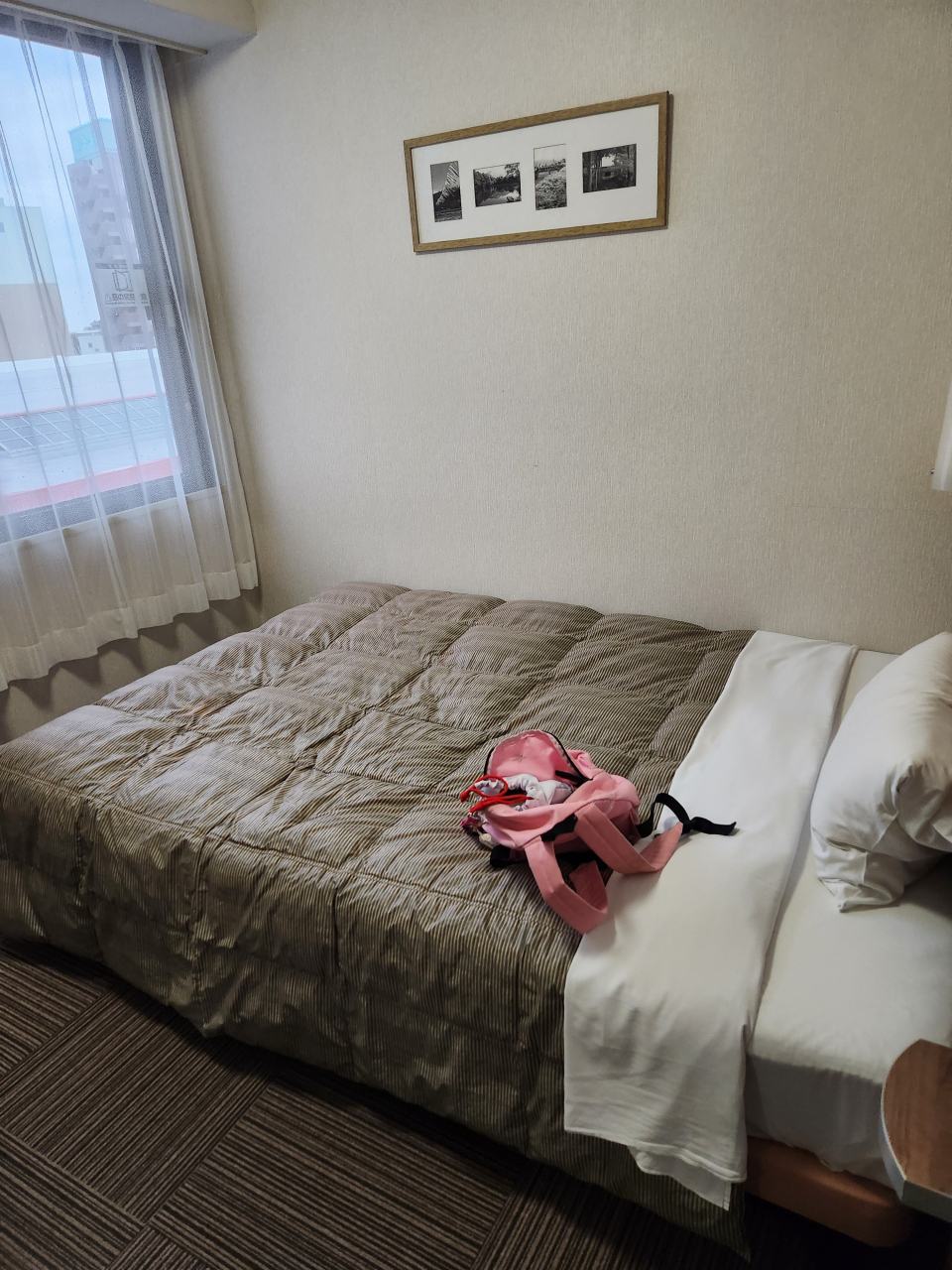 ダブルベッドがかなり大きいのが小学生連れには最高でした。また荷物もあるので駅から裏手に回るとすぐで、奈良公園に行くのも徒歩でいけます。